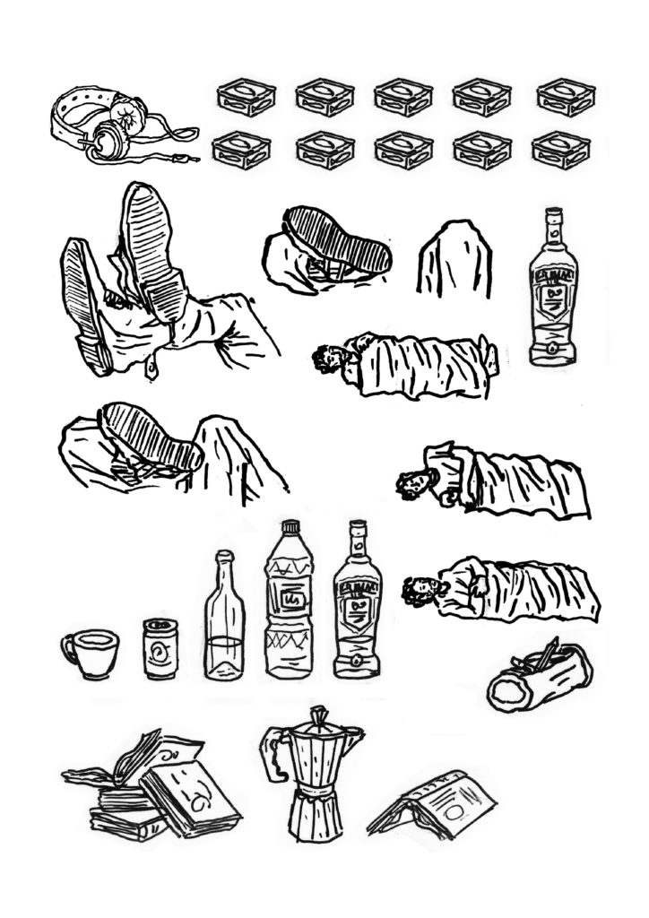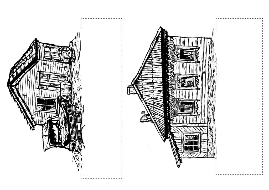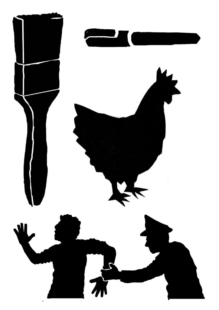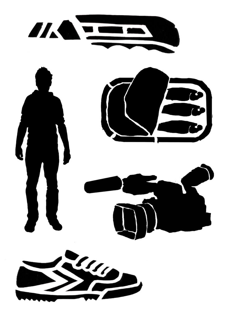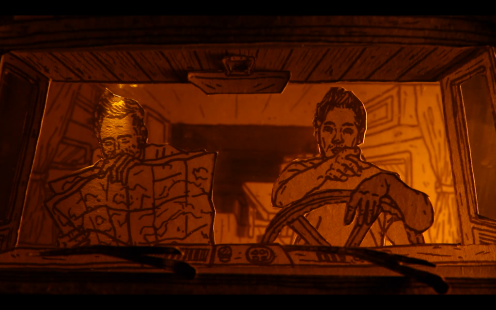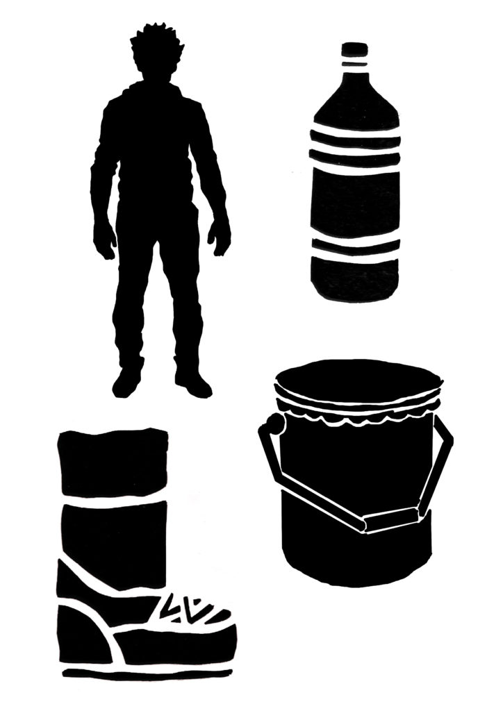 1) Tout d’abord, réaliser un dessin pensé pour être « découpé en tranches ». Dans le cas du camion pour C’est assez bien d’être fou, il y a : le pare-chocs, puis le tableau de bord, puis les sièges, la cuisine, le lit…