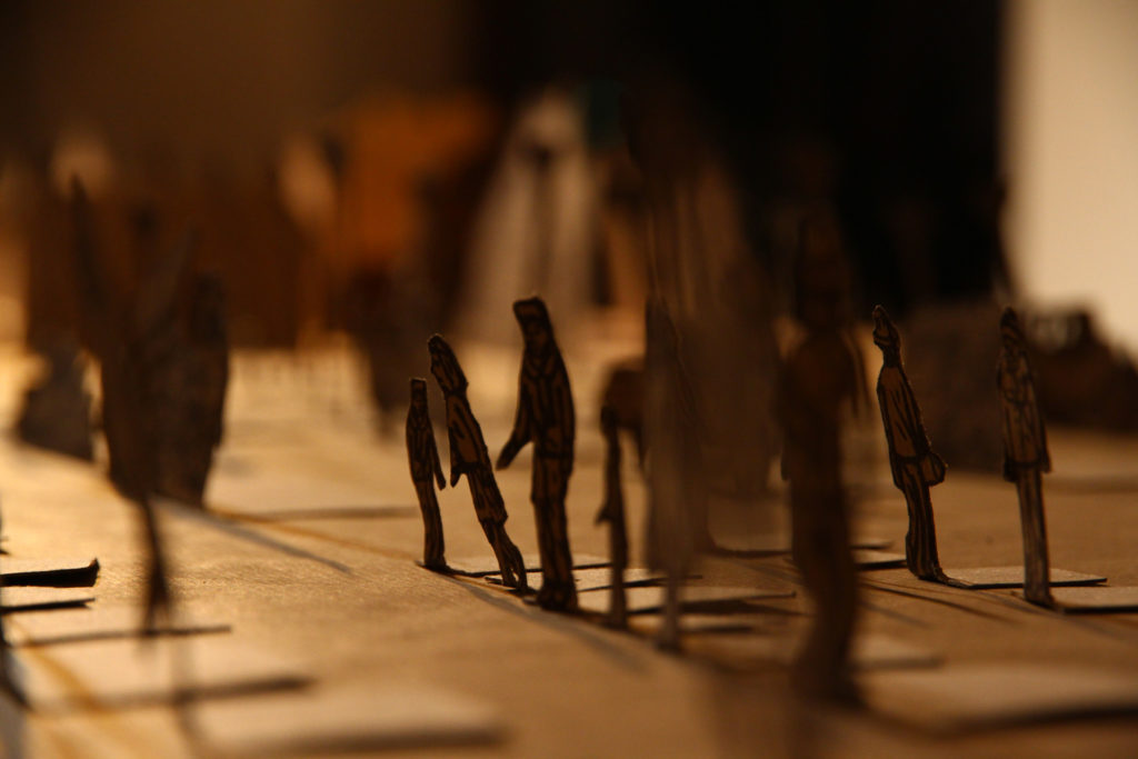3) Disposer sur chaque plaque un élément du décor, et placez-les de manière à ce que les différents éléments s’alignent correctement et que leur superposition reproduise en volume votre objet ou décor.