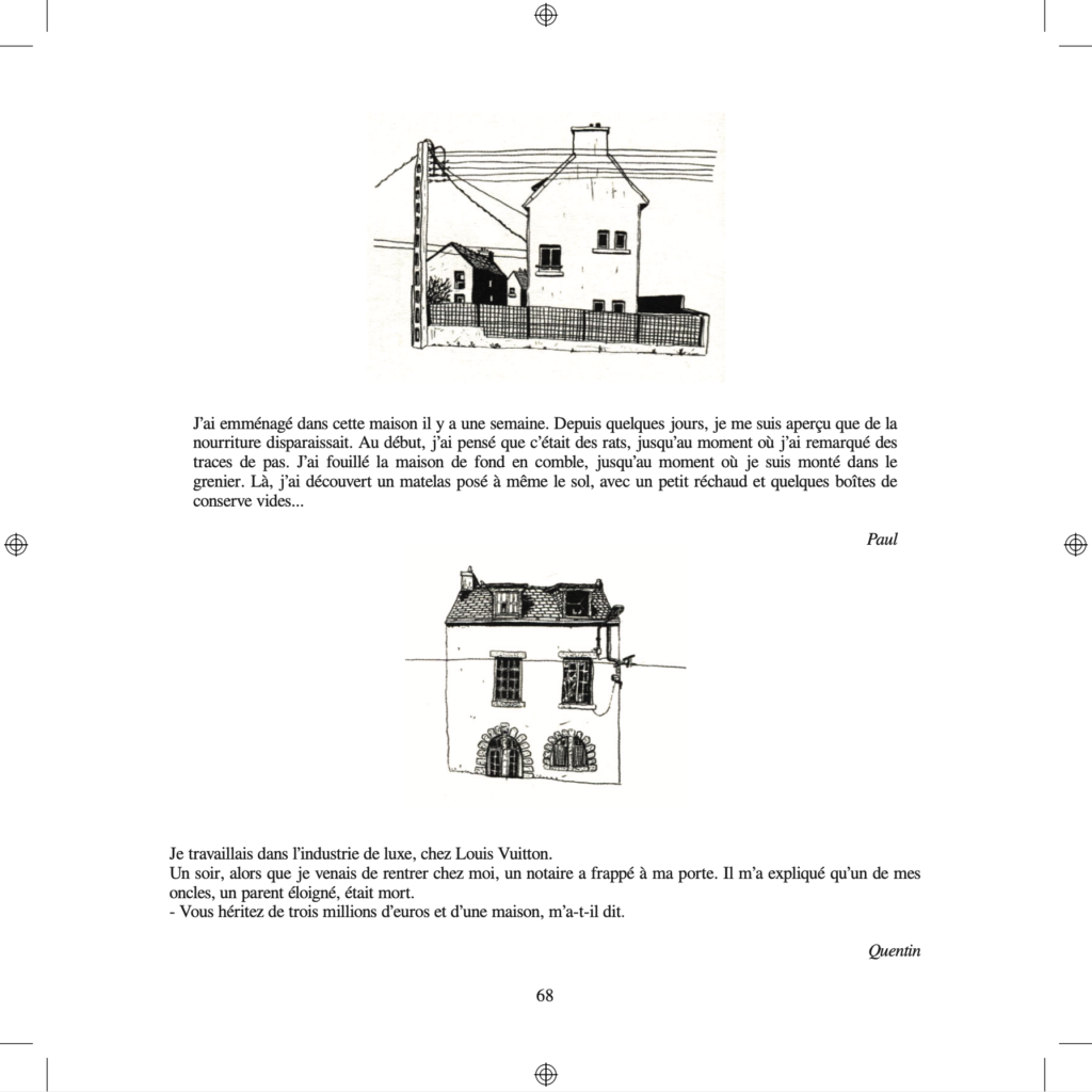 – et puis, comme il faut bien rentrer à la maison à la fin du voyage (ou en partir au début), des baraques dessinées par Zoo Project qui rencontrent une phrase, une situation, un morceau d’histoire à peine amorcé ou suggéré…